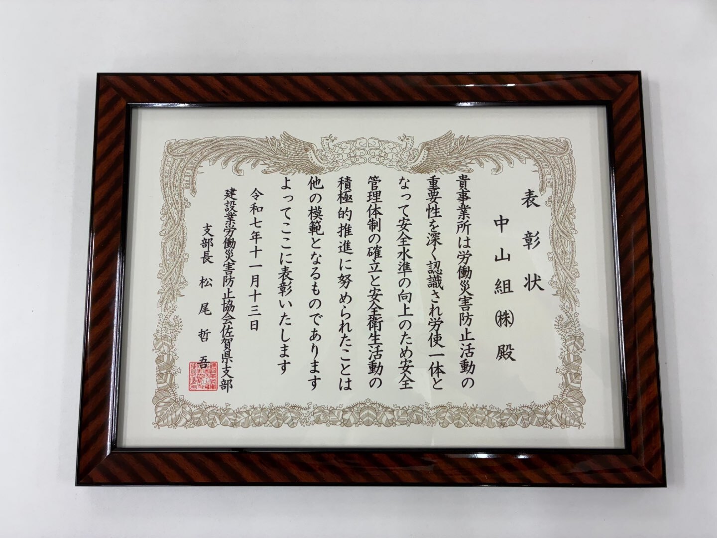 先月11月13日、唐津市文化体育館 文化ホールにて開催された第62回 佐賀県建設業労働災害防止大会に参加いたしました。