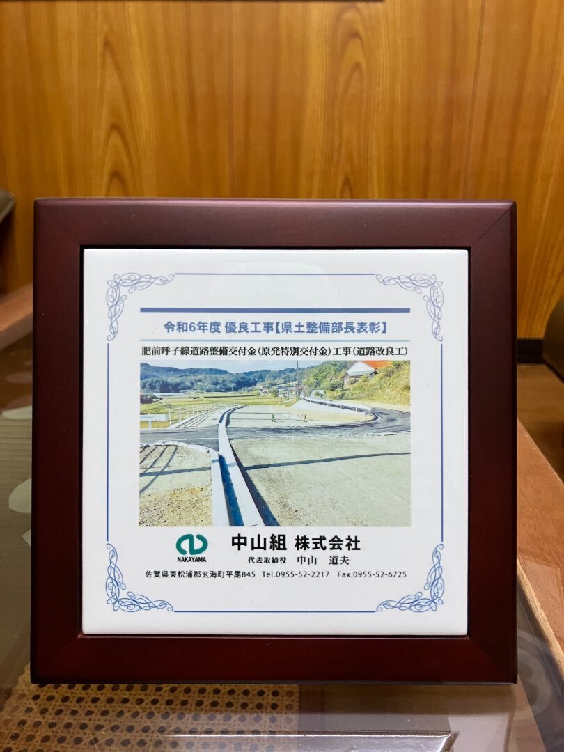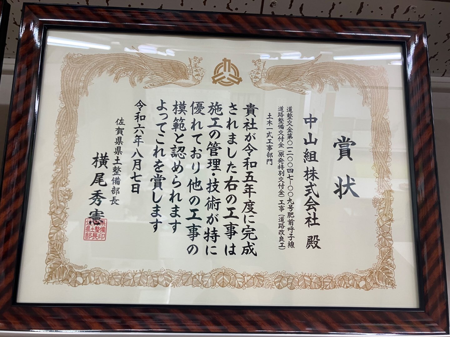 中山組株式会社は 令和6年度 優良工事(県土整備部長表彰) を受賞しました。